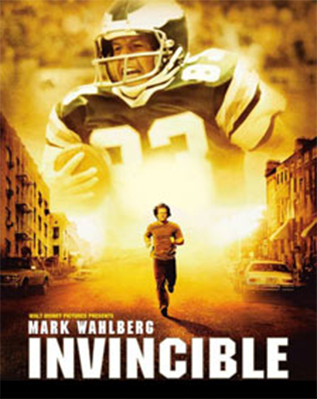 Some of Hollywood’s most inspirational movies were born from the world of sports. One in particular inspired not only sports fans but anyone with a pulse. In 2006 Walt Disney Pictures continued their triumphant tradition of motivating sports stories with the release of INVINCIBLE. It’s a stirring football drama starring Mark Wahlberg as Vince Papale, an ordinary guy who, against all odds, takes his shot at every fan’s fantasy of going from the grandstands to the gridiron. It has been described that Papale’s odds of achieving his wildest lifelong dream of playing for the Eagles as “one in a gazillion!”